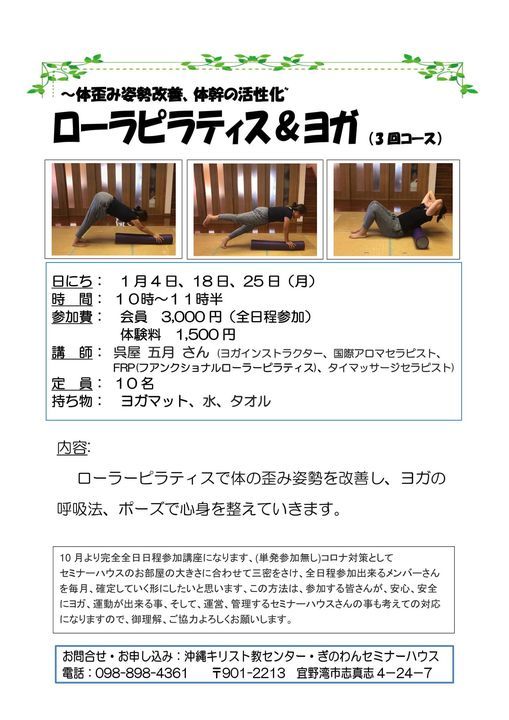 ローラーピラティス ヨガ ストレッチポールとピラティス 沖縄キリスト教センター ぎのわんセミナーハウス Okinawa 25 January 21